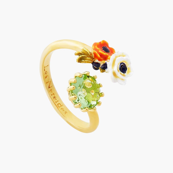 Introducing the Petit Jardin Rings from Les Nereides. This exquisite adjustable ring from the Little Garden collection showcases a hand-painted pink poppy flower, evoking the beauty of a flowering orchard....