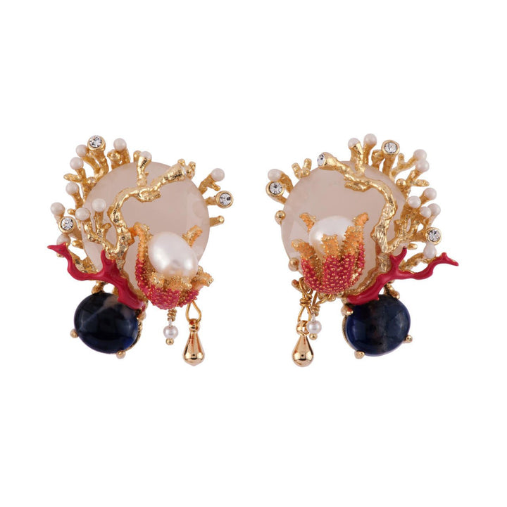 Atlantide White Crystal Stone W/Corals, Beads & Sea Star Earrings | AFAT108C/1