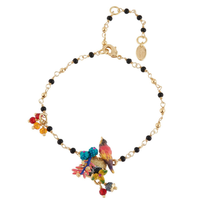 \nThis bracelet is made of: Gold plated brass (14k), reconstructed stone, hand faceted crystal, hand-painted enamel, rhinestones. Nickel free.\n\nDimension: Length: 15.5cm 4cm extensionShipping