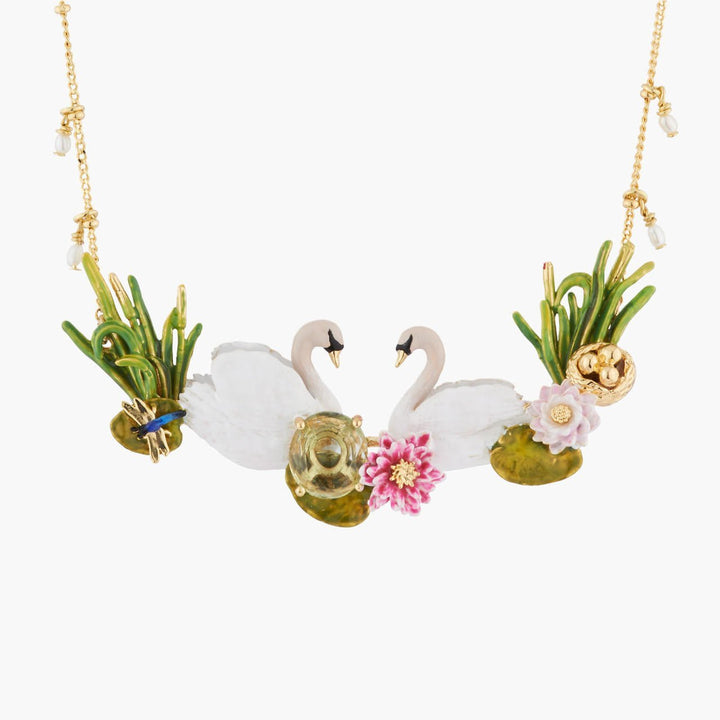 Two Swans In Love Among Water Lilies Collar Necklace | AKCY301