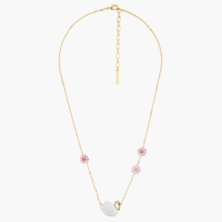 Pink Water Lilies And White Swan Necklace | AKCY303