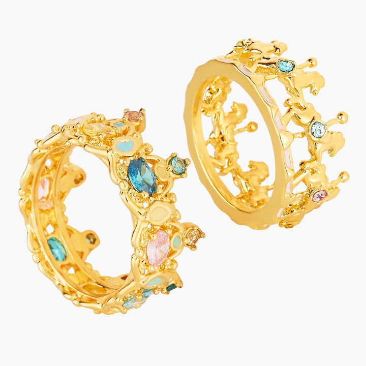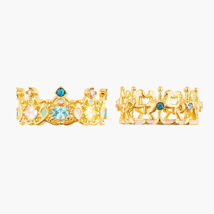 A ride on your fingers, a spin in your life, with this two band ring on which golden carousel horses and coloured crystals invite you to discover the charming world of the Snapshots of Paris collection.