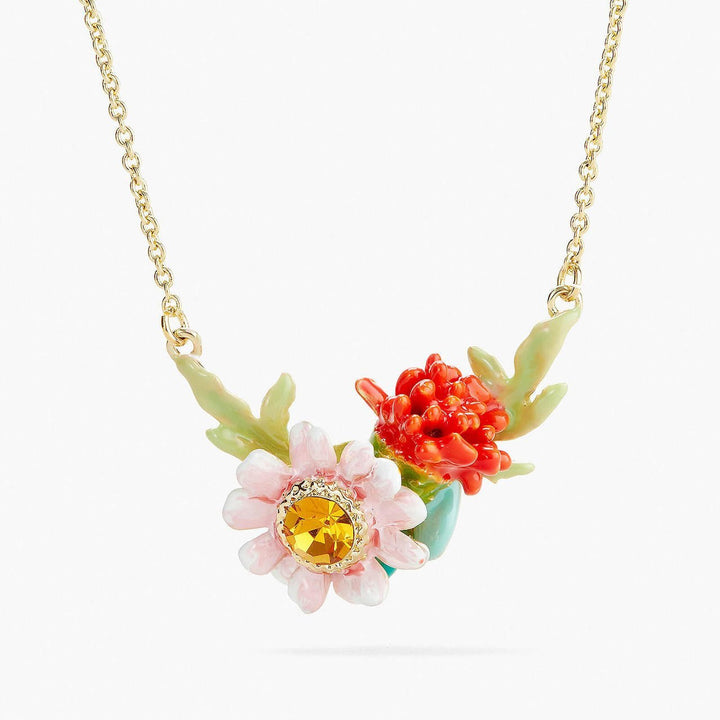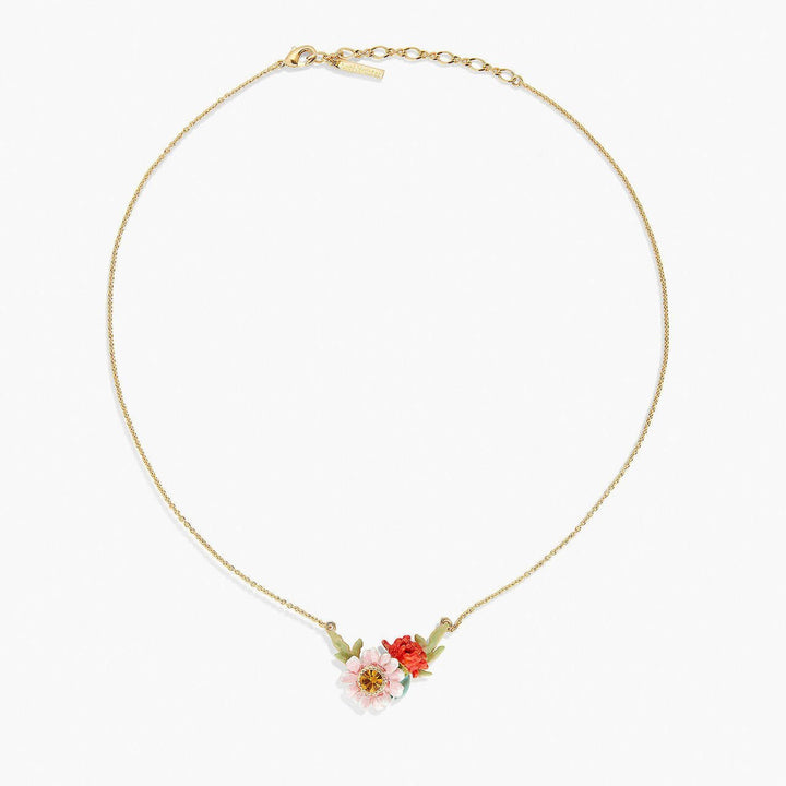 Red Dahlia And Pink Meadow Flower Pendant Necklace | APPP3061