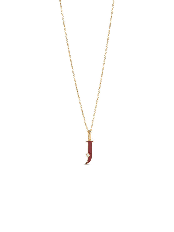 On this pendant necklace, the enamelled letter J appears, coloured burgundy red and adorned with cubic zirconia. Les Néréides reinvents the alphabet. This time, after the Floral Letters and Extraordinary Alphabet collections, the choice was made for an elegant and timeless typography. The enamelled letters are available in four complementary colours (off-white, pastel pink, cornflower blue and burgundy red) and embellished with cubic zirconia.