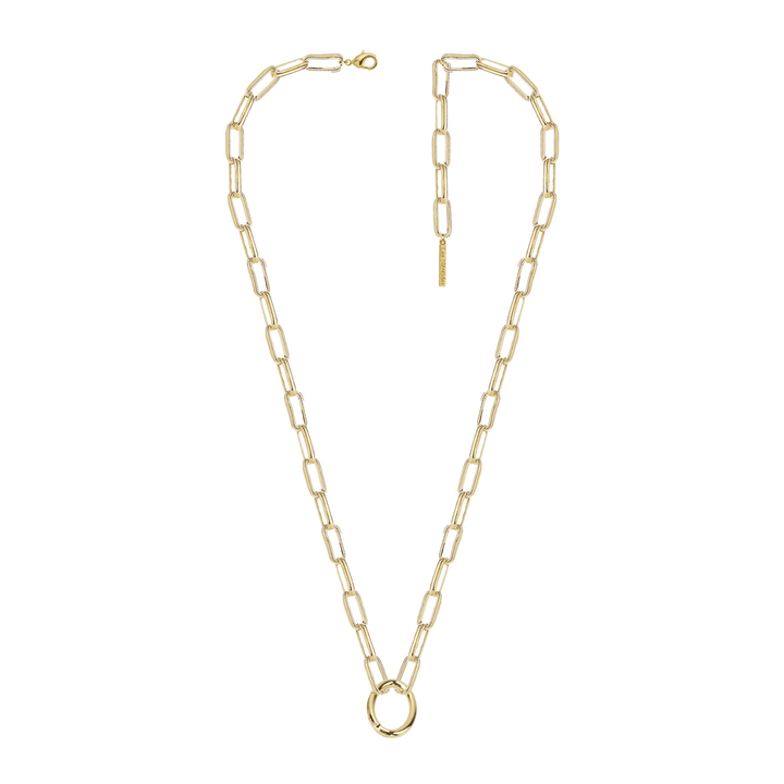Description: Fine rectangle link chain necklace, gold-plated. You can customise it with one or more pendants. This season, Les Néréides is launching a new product line by introducing twenty-six pendants. It will now be possible to create a necklace with different pendants chosen from a range that embodies the DNA of Les Néréides.