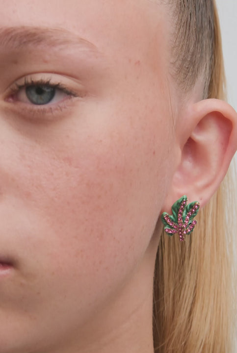 Vine Leaf And Faceted Crystal Earrings | AUVI1061