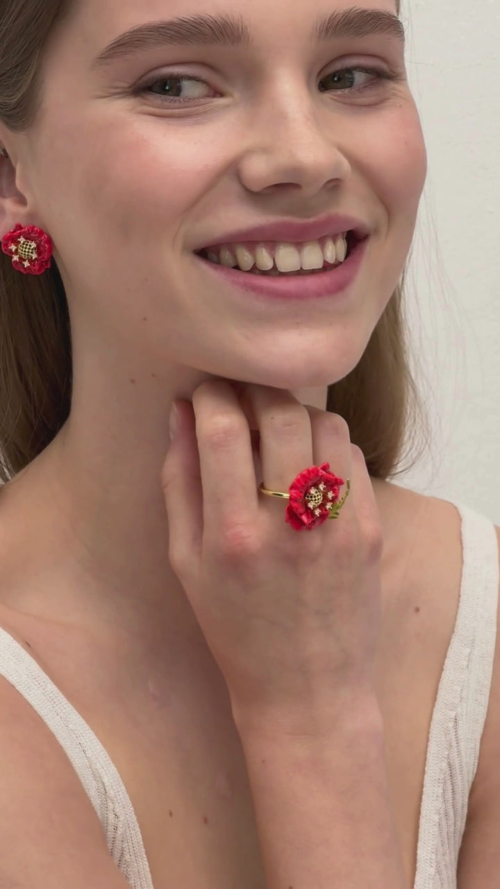 Red Poppy And Cubic Zirconia Earrings | AWBC1011