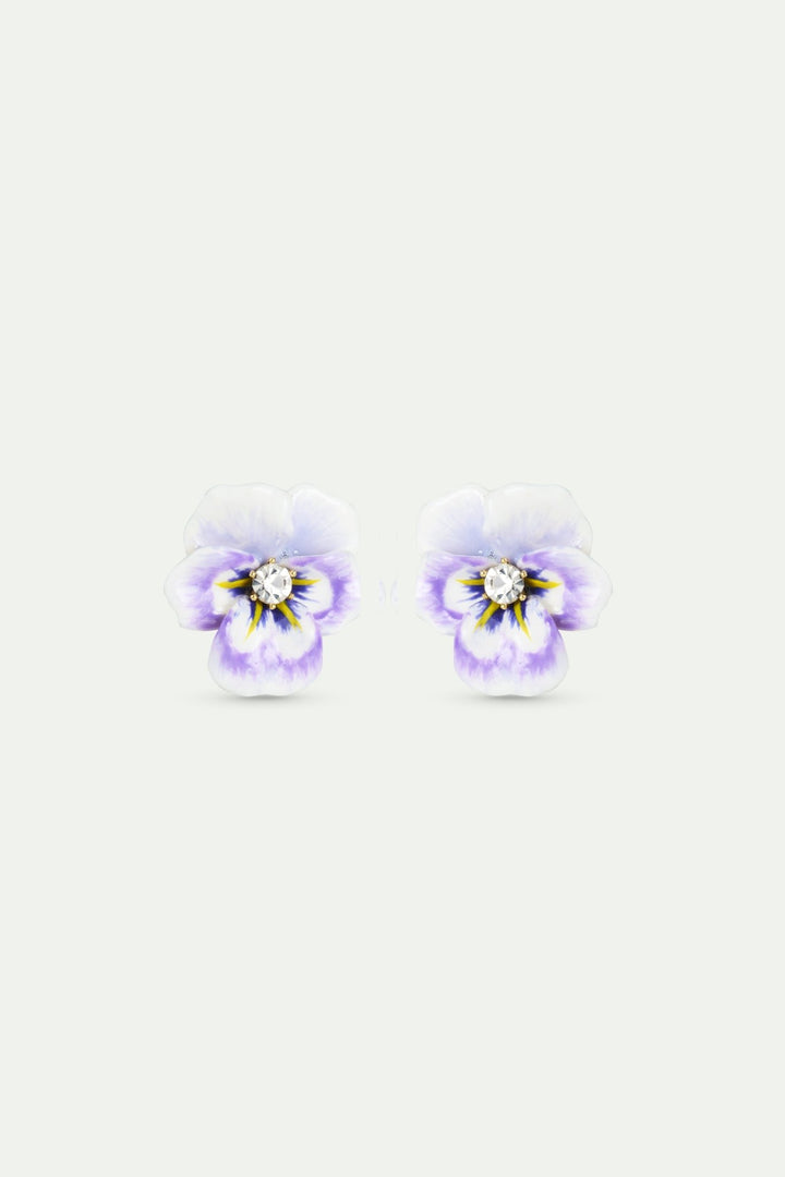 Purple Pansy & Cut Crystal Earrings | AWMP1031